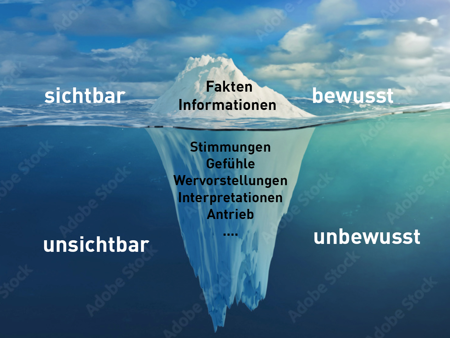 Bei jedem Menschen sehen wir das sichtbare als Körper, als Gesicht und manchmal noch die Ausstrahlung. Bei jedem Menschen ist hinter der Fassade das unerklärliche Unbewusste vorhanden. Dies, wie in der Psychologie beschrieben als Unterbewusstsein.